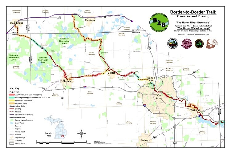 The B2B Trail is an ambitious effort to create a non-motorized pathway that would stretch across Washtenaw County, connecting with the neighboring counties of Wayne and Livingston.