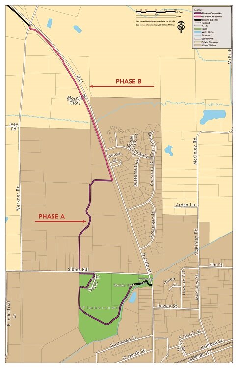 The new 1.6-mile connector would start at Veterans Park in Chelsea, twisting through Timbertown before extending north via a road-separated path on M-52 to