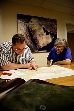 A Couple of IScience Employees Going Over Maps of China-Ann Arbor