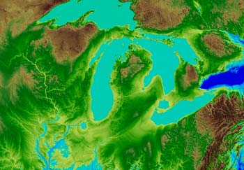 An Elevation Map of Michigan and Its Surrounding Area-Ann Arbor