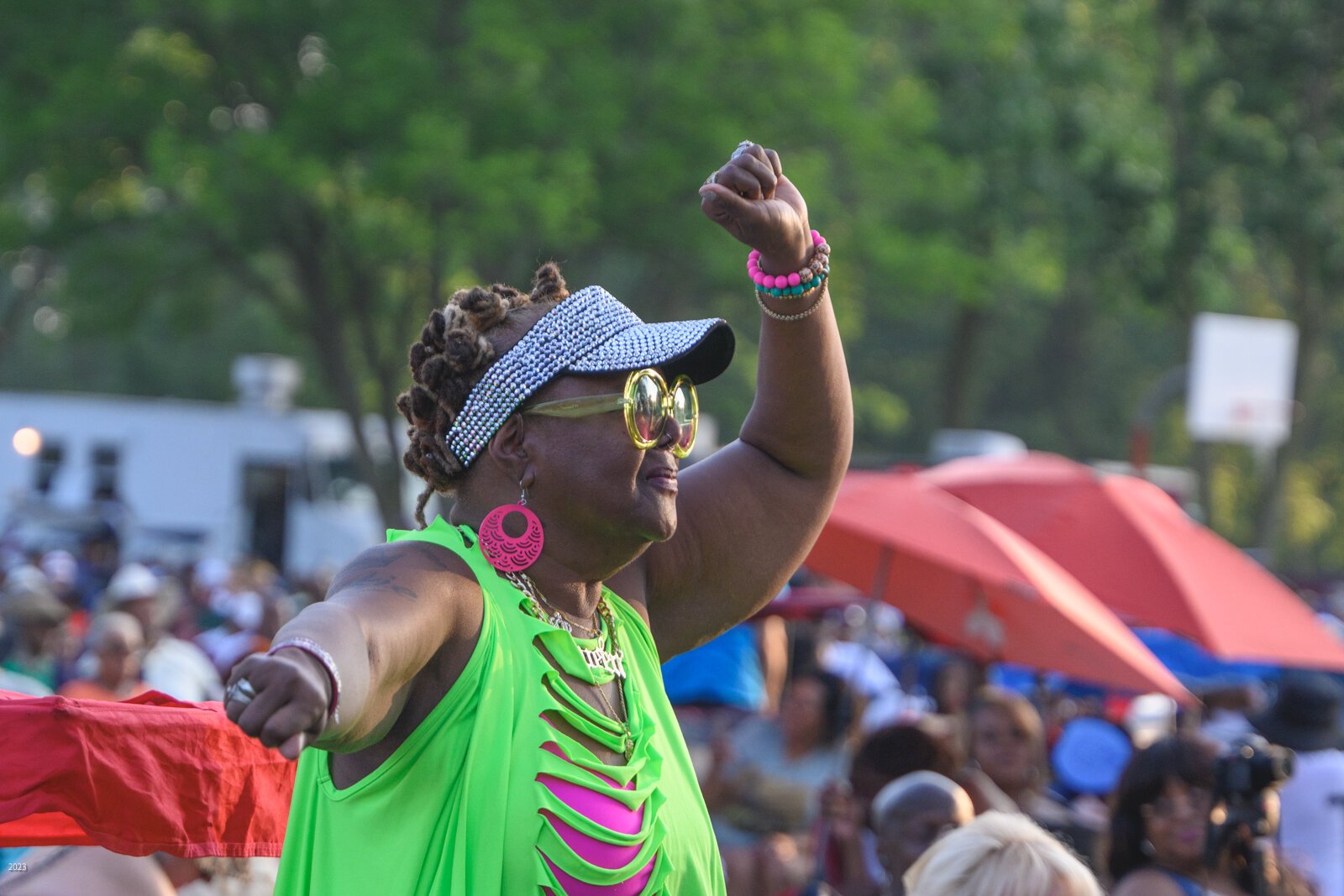 “Last year, I did a 90-minute set and it rained the whole time,” she says. “People had tents, umbrellas, any kind of thing you could have, and they were not going to leave.”