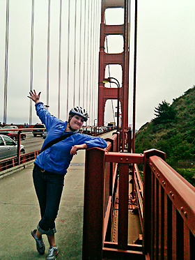 The author on the Golden Gate Bridge, photo courtesy Kate Rose