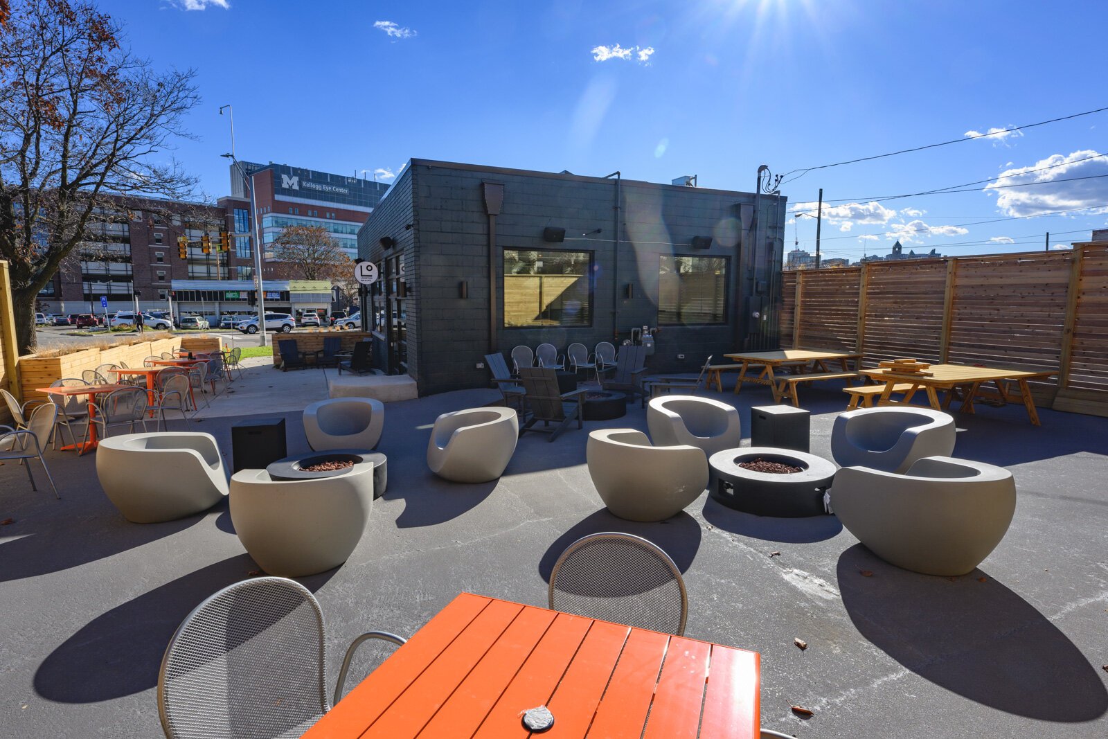 “And certainly in the summer, when the [Huron River] is bumping, we will be an active participant in stuff going on at the cascades and at the DTE project by the bridge there,” he adds. “Our liquor license lets us sell things to go. So we’re looking at doing kayak kits and stuff for people to take with them. … There will be a pretty nice, festive vibe on the corner there.”