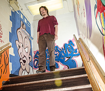 Matt Toschlog at the Reactor Zero/Quantum Signal headquarters in the former Saline Union School.