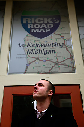 Jake Suski is nothing if not linked in – in every sense. The 26-year-old communications director for Rick (Snyder) for Michigan lives downtown, half a block west of Main. This political animal’s range is the five blocks surrounding his abode and his office – the Snyder-for-governor campaign headquarters at the southwest corner of Washington Street and Fourth Avenue.