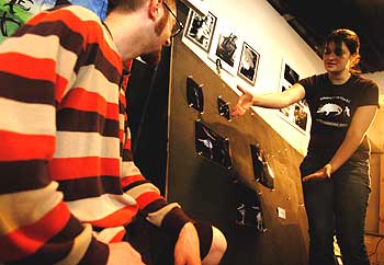 Student Allison Correll shows her photography to Visual Arts Coordinator Trevor Stone. The visual arts program often uses peer critiques to help students improve their work.