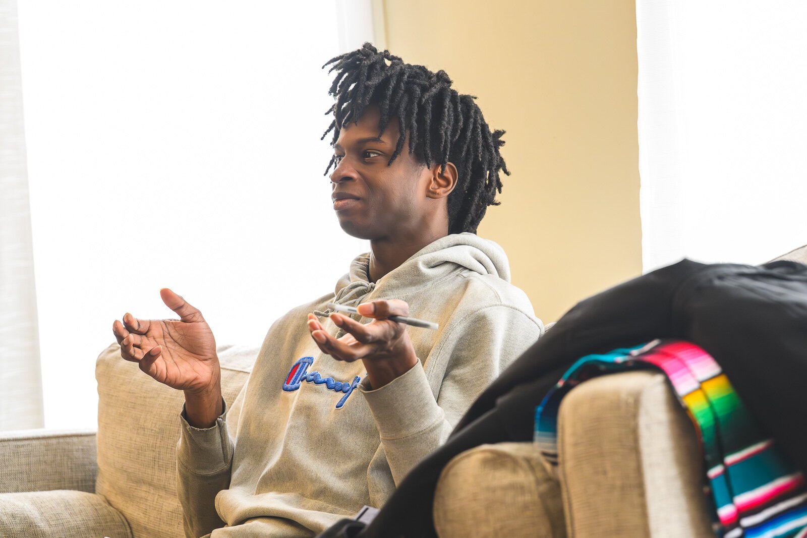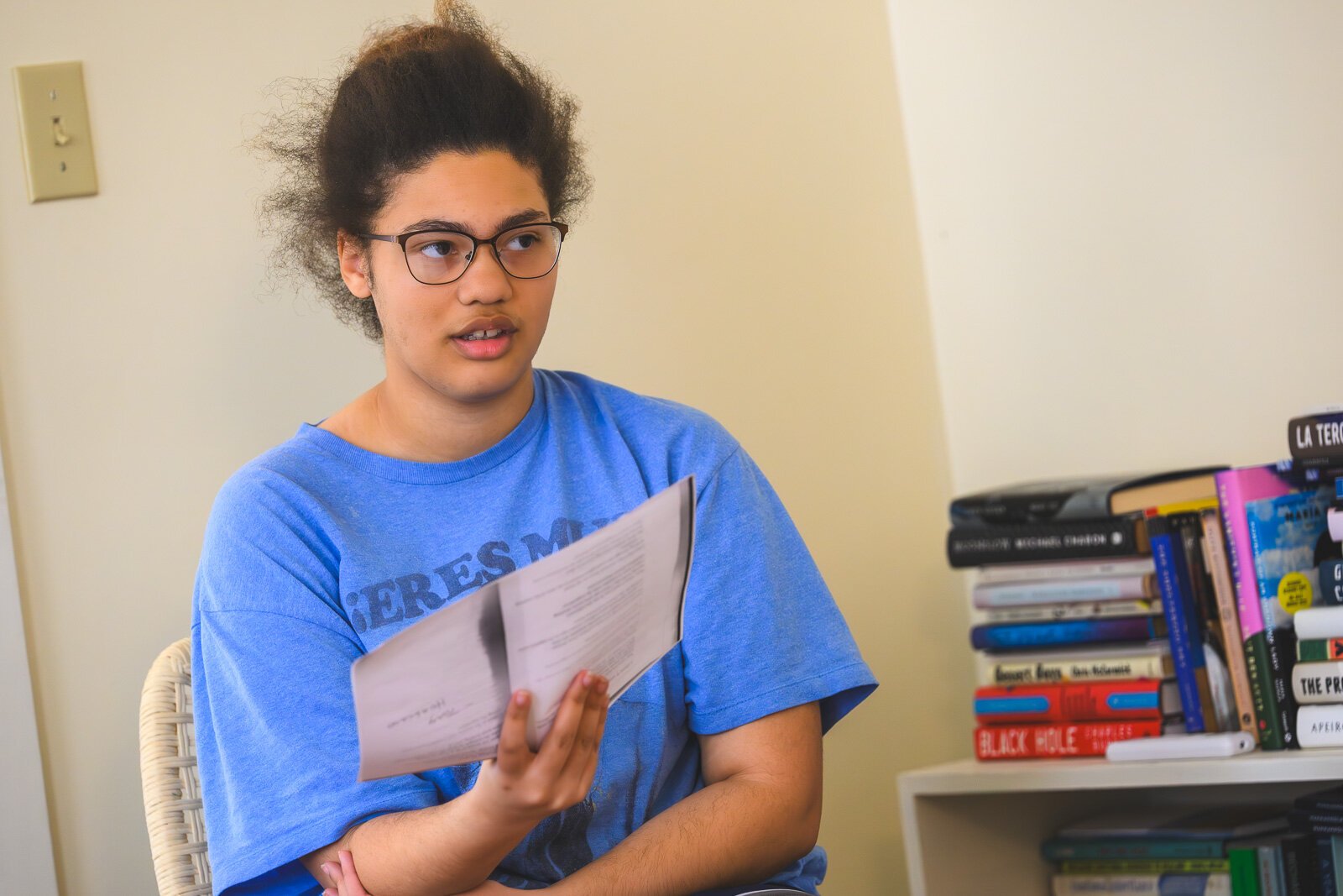 Jeff Kaas leads a poetry discussion with EmpowerED High School students .