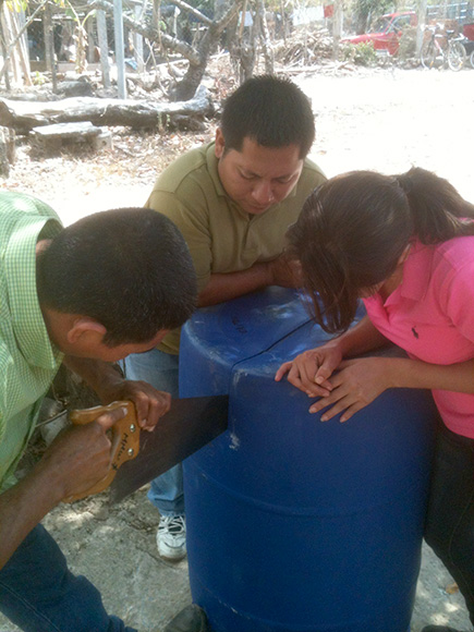 The system is made out of the same PVC plastic as most pool toys, and as a result it will have a relatively low retail price of $100. But it took Michelle a few prototypes to hit upon the current design. Michelle worked with Jackie Hernandez Giron, a local agricultural engineering student whom BIC had sponsored to go to college, throughout the prototyping process. Early designs were fashioned out of plastic barrels, and Michelle and Giron have spread about 60 such units around Central American communities over the past two and a half years.