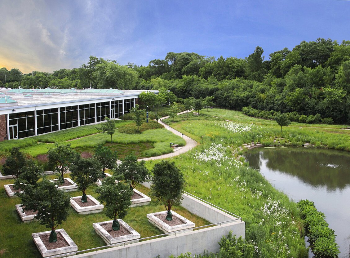 This green roof is an example of green stormwater infrastructure at corporate headquarters of Johnson Controls, Inc. in Glendale, Wisconsin