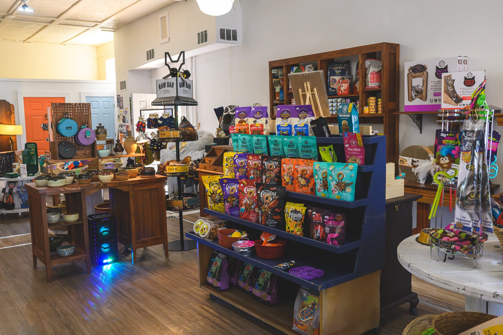 She now stocks high-end dog and cat food, treats, toys, and other pet supplies. Many of her items are fair trade and/or locally manufactured by a small business, including Michigan-based Frontier pet food.
