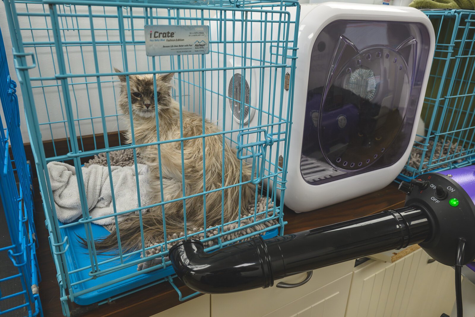She says she has groomed cats in a facility where both cats and dogs are welcome, but it’s not ideal. Most of the cats — and their owners — appreciate the cat-only atmosphere.