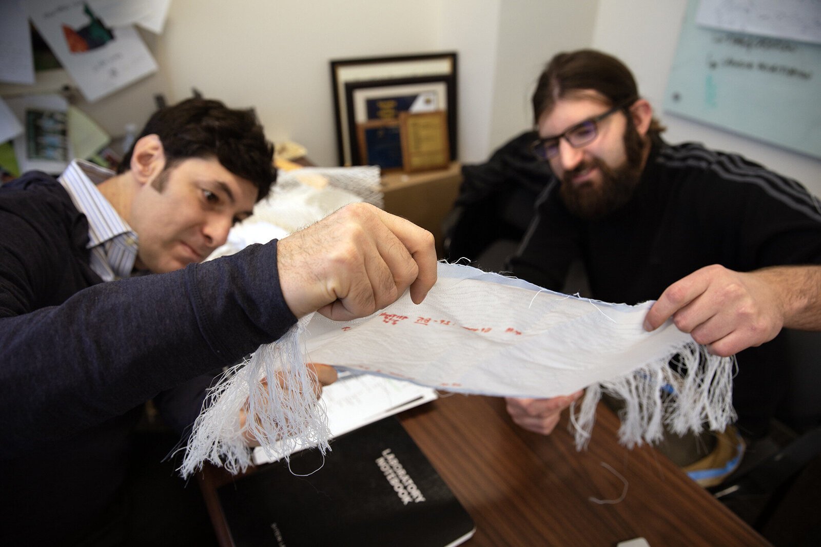 Max Shtein, a U-M professor of materials science and engineering, and postdoctoral researcher Brian Iezzi have published a study in the journal “Advanced Materials Technologies” about photonic fibers that can be woven directly into garments and other textiles.
