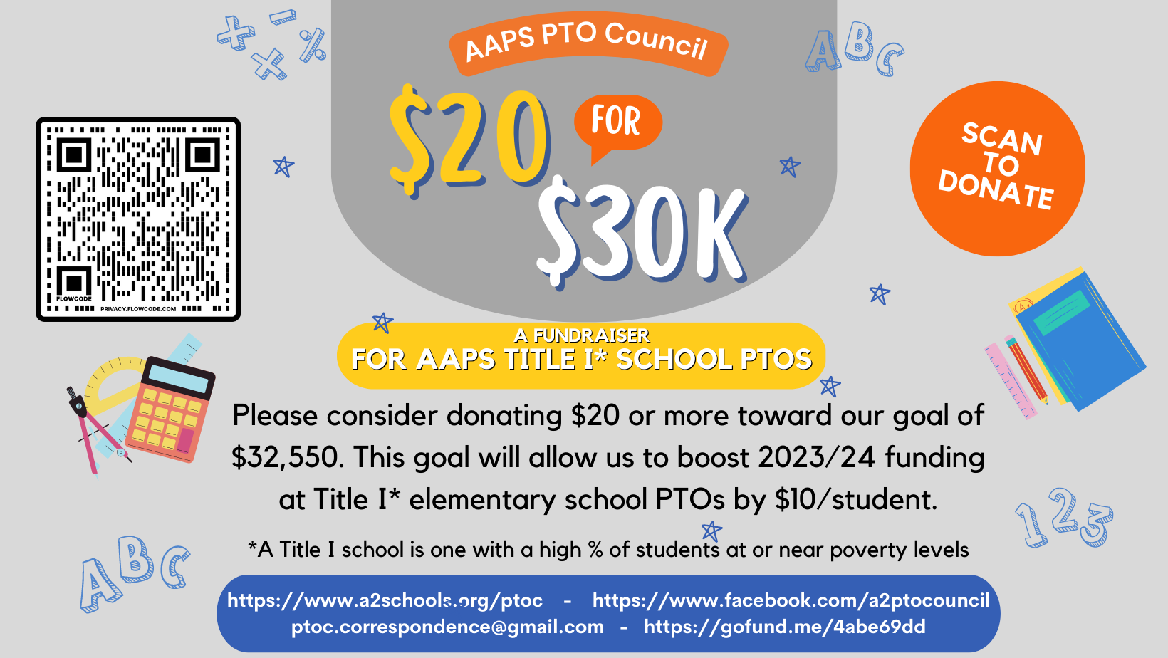 If that goal is met, the PTOC will be able to donate about $20 per student at each school.