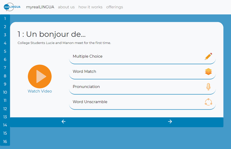 Currently, realLINGUA offers two lessons of realFRENCH. Phillips says Spanish, English, and more French lessons are coming soon. Lessons are currently free as the company builds awareness and seeks customer feedback.