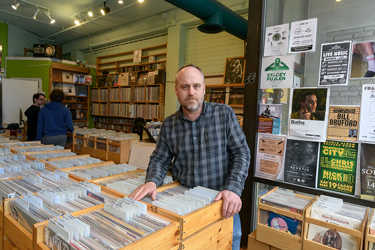 While an uptick in vinyl sales has also benefited Wazoo Records, owner John Kerr says the format’s popularity poses different challenges. For instance, new unsold records can’t be returned, whereas a percentage of new CDs can be.