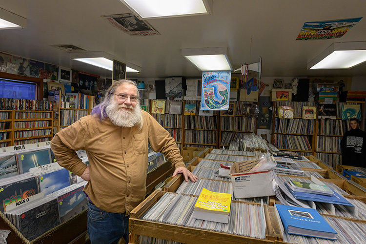 Taras started PJ’s with his brother Mark more than 35 years ago. The small, upper-level shop is located just outside downtown above Pastry Peddler bakery, and it’s crammed with classic rock, jazz, soul, R&B, and blues LPs. Most are used, but the store also stocks a “few thousand” reissues.