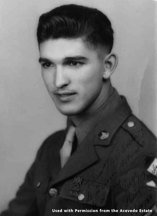 Acevedo was captured after the Battle of the Bulge and transported to a Nazi POW camp, where he was tortured and deemed an undesirable. He was transferred to a concentration camp named Berga an der Elster outside the German village of Schliben. He was held at Berga until the war was nearly over and was then forced to undertake a 215-mile death march that killed 70 of the 350 prisoners who were involved.