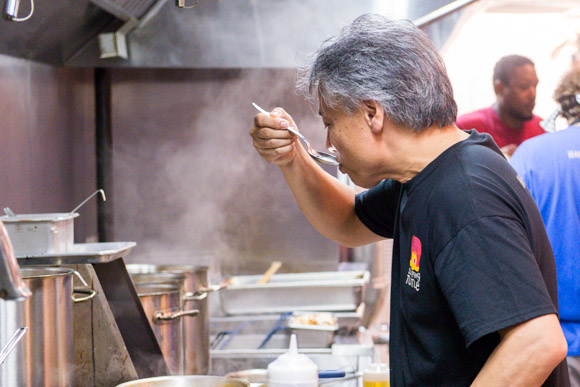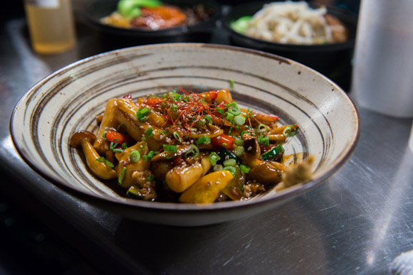Though he is excited by what he does in fine dining, he says, “On my days off I like going somewhere with my kids and wife. It can be a little difficult to find somewhere to go. So I thought, why don’t we open something that’s not pretentious? Not the [upscale French] fusion, a little more authentic, not cheap but more reasonable so people can come once or twice a month. I didn’t want to downsize my career or the dining experience; I just wanted to have something fun, more affordable, more hot home-cooking. Street food is more interesting to me sometimes.”