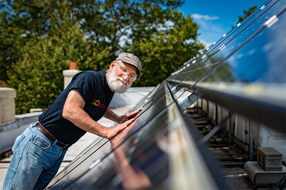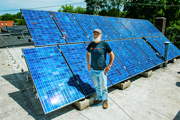 Doug Coombe – Dave Strenski with the solar panels at the Ypsilanti Food Coop