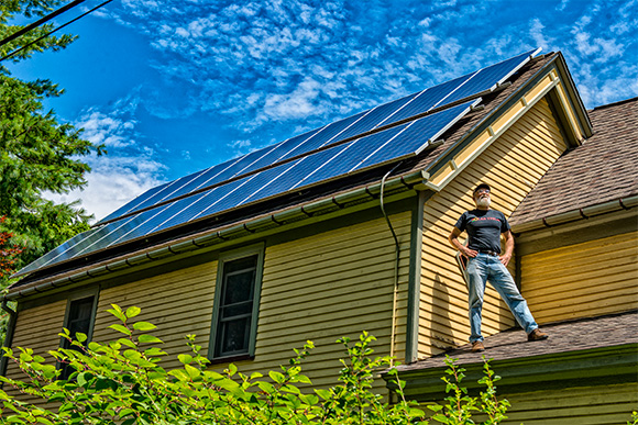 Doug Coombe – Dave Strenski with the solar panels on the roof of his house