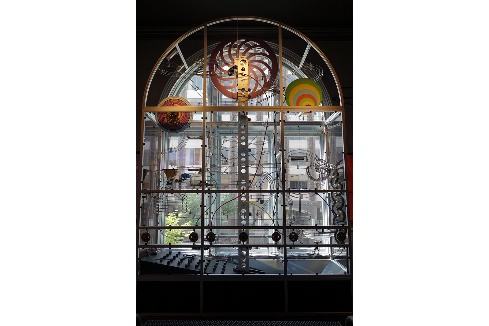 Exhibits include a first-in-the-world digital roulette curve, which is reminiscent of a classic spirograph, but reincarnated as a logarithmic spiral drawing tool that can be used to create almost hypnotic patterns. A transparent and intricate window maze ball machine is designed to fit one of the museum’s large arched windows. Users can sit in and operate a propeller chair to hoist themselves to almost ceiling height before being propeller-powered back down to the ground. And an interactive 17th-century clock stretches from floor to ceiling.