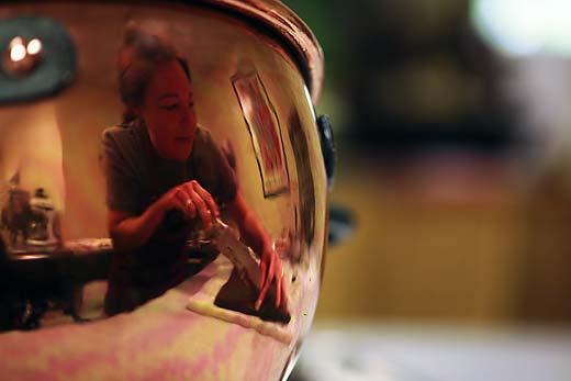 Nancy Biehn smells really good. As Chief Executive Chocolatier of Ann Arbor’s Sweet Gem Confections, her person exudes a great aroma beyond her excellent personal hygiene. Her hands are often chocolate-streaked. Her aura is sunny – to be expected in someone whose career path is directed towards enhancing the happiness of others.