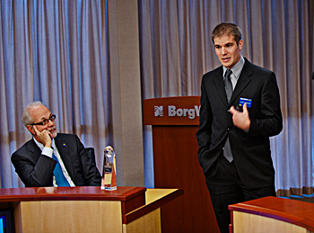Student Andrew Burgess presents before John McGill by Steve Kuzma courtesy the Tauber Institute