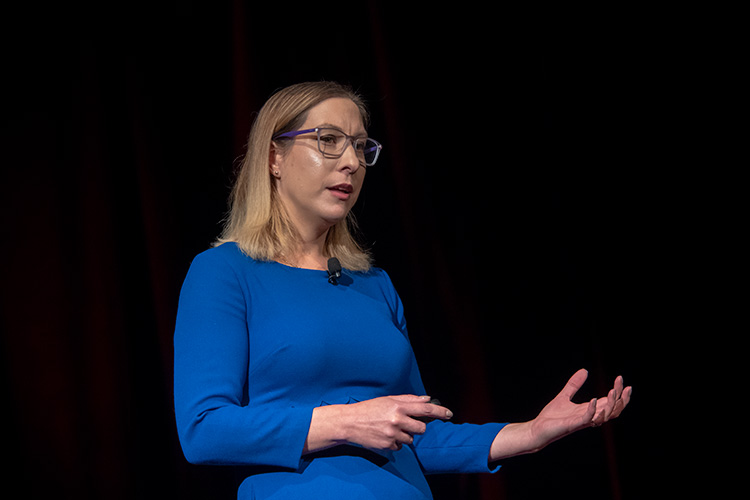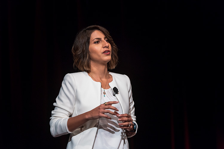Zahra Bahrani Fard, a transformation systems analyst at the Ann Arbor-based Center for Automotive Research, gave a talk on “smart communities.” She started by sharing her personal story of being late to an interview and missing out on a career opportunity due to a less-than-stellar experience with public transportation.