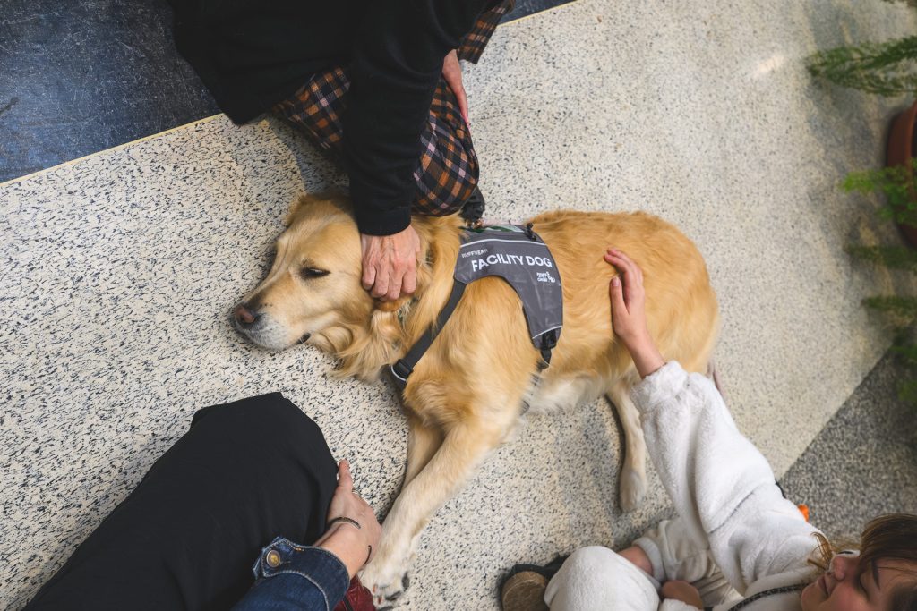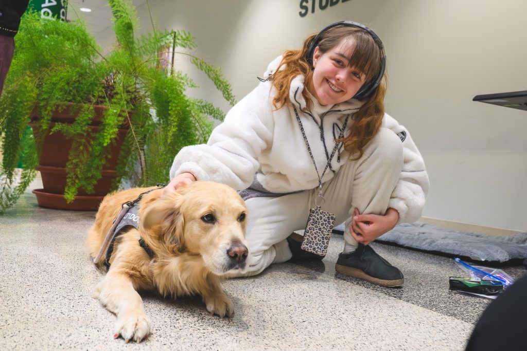 Since fall 2024, Tinker the facilities dog has been available to students four days a week on campus.