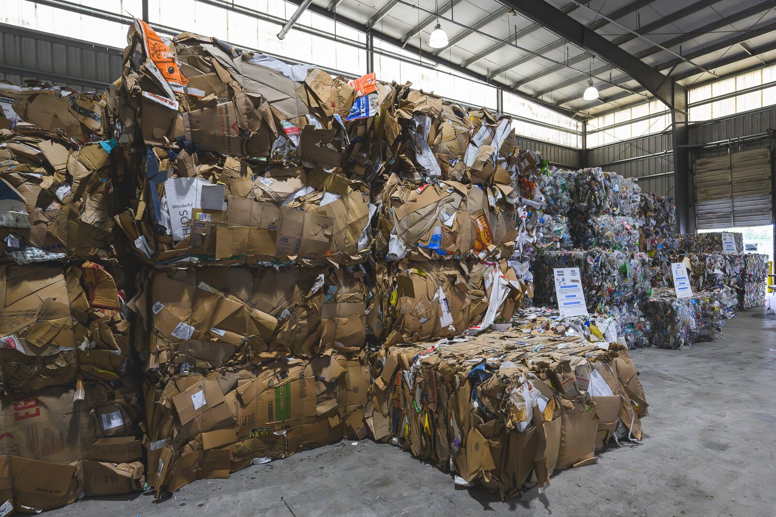 As visitors come to the tip floor of the MRF, they will see a mountain of mixed recycling, about 85% of it composed of paper and brown cardboard.