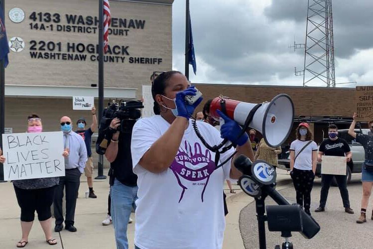 The Ypsilanti resident is a social worker and also the founder of Survivors Speak, an organization that aims to give voice to various kinds of survivors. In mid-May, Duckworth was shopping for supplies to make no-contact safe deliveries to local seniors, one of Survivors Speak’s COVID-19-related projects. While she was still in the store, she received a call from a friend directing her to a video of a Washtenaw County Sheriff’s deputy punching a Black woman, Sha’Teina Grady El, in the head.