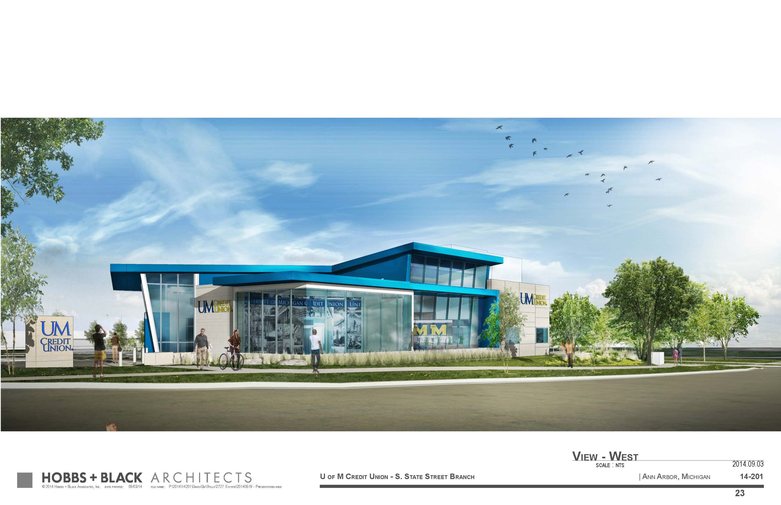 The University of Michigan Credit Union’s previous branch was located in the ground floor of an office building overlooking South Main Street and East Eisenhower Parkway. The credit union wanted a stand-alone branch to make it easier to find and more readily accessible to its members.