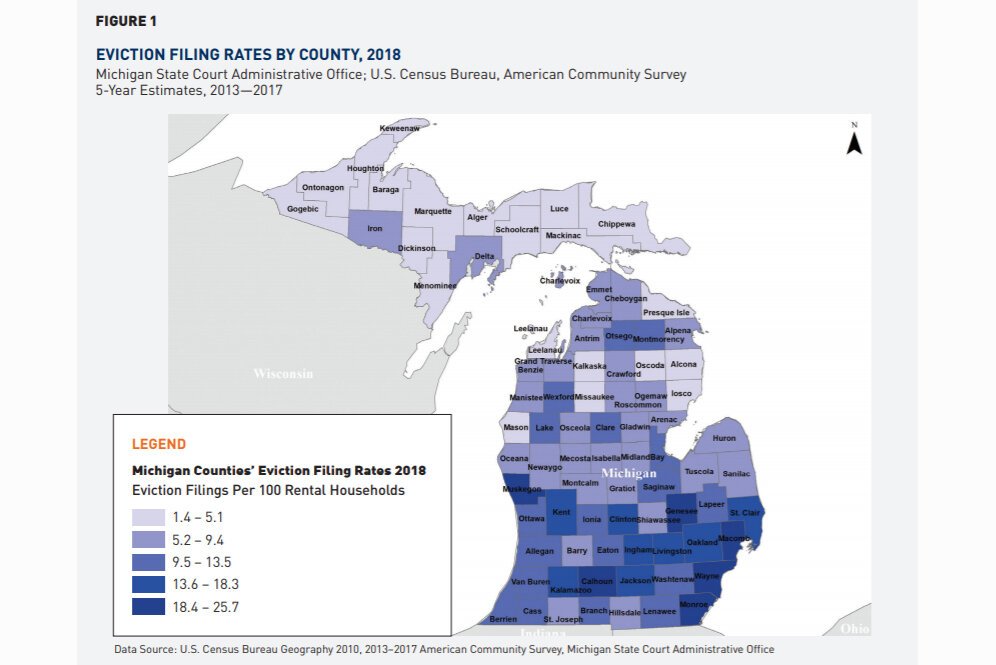 The report, which analyzes eviction data from across the state, shows an eviction filing rate of 11.3% for the county, the 25th highest rate out of Michigan’s 83 counties.