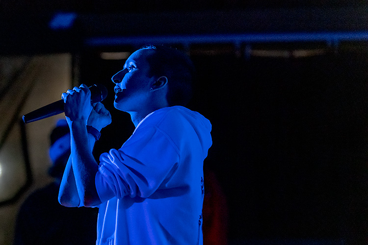 The event began shortly after organizers unrolled a black curtain bearing the logo “Underground” in block letters over the Off Center’s front window. Charles Peterson, co-founder of Ward 1 Productions and The Underground’s DJ, cued up the bass-heavy beats for each set. As performers took the mic, audience members formed a semi-circle, bobbing their heads, dancing, or calling out encouragement.