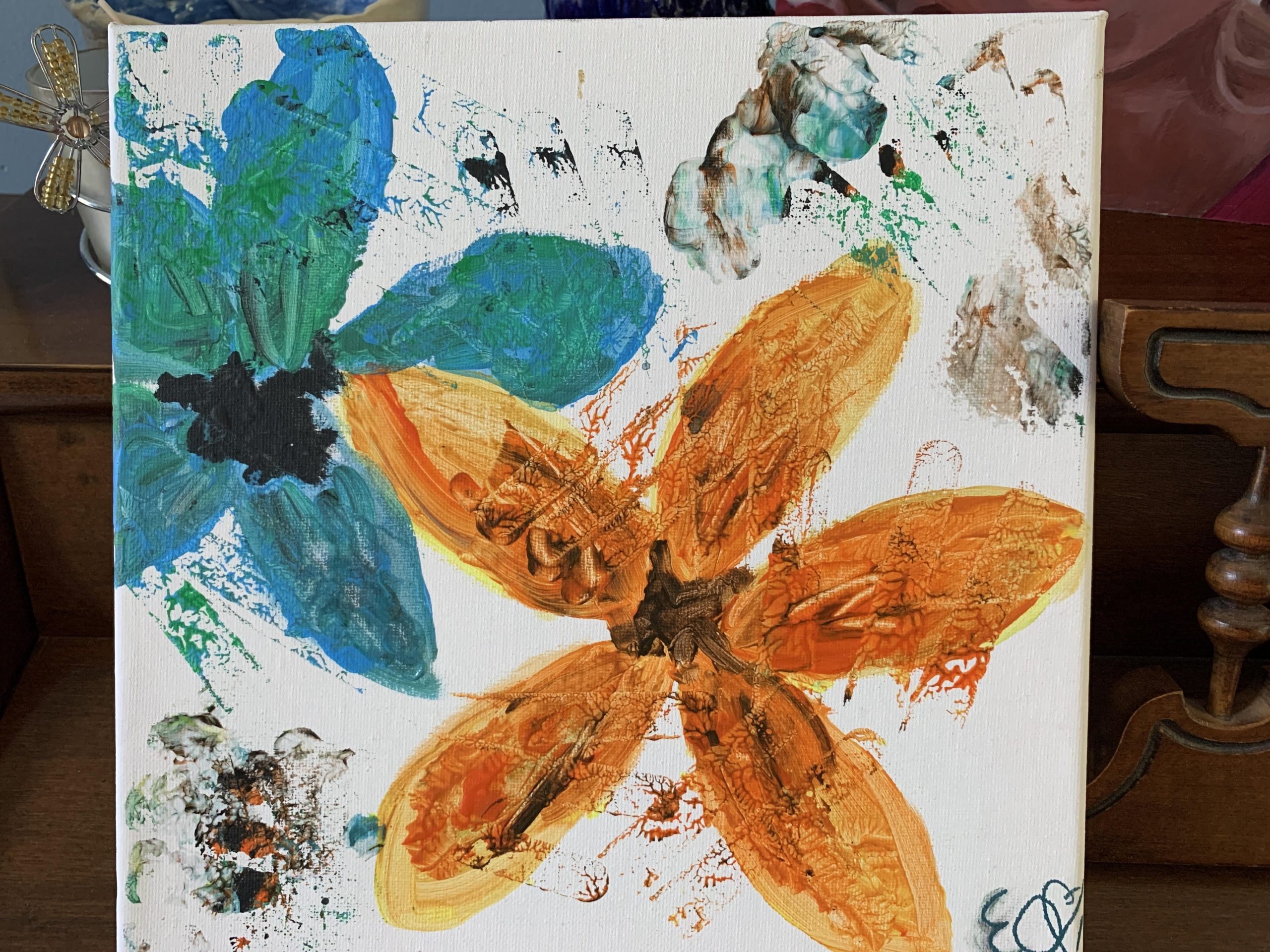 The 11-year-old describes one of her more recent abstract pieces this way: “It has a lot of colors and stuff, oranges and blues. It’s kind of crazy.”