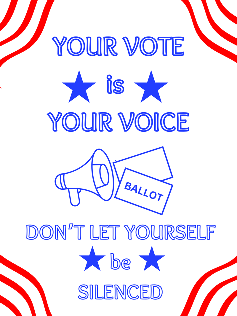These posters emphasize the importance of civic engagement. When America was first founded, only male property owners were allowed to cast votes, but with decades of protests, rallies, and speeches, we have improved so much from that position. Now that people as young as 16 can register to vote, youth have more of an opportunity than ever to get involved in their government and make a difference through their vote. Michigan’s new law makes it so that 16-year-olds can either register to vote online or at a Secretary of State office when they get their driver’s license/permit.