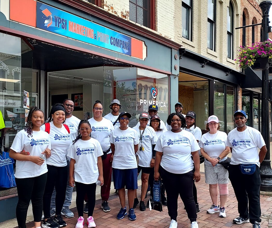 Washtenaw Optimal Wellness (WOW) has partnered with Ypsilanti Marketing and Print Company (YMPC) and the Ypsilanti Downtown Development Authority to bring a new, free walking group to Ypsi residents this summer. Every Saturday, the “Walk With Friends” group completes a two-mile walk through downtown Ypsi and Riverside Park to promote social connection and provide walkers with a variety of health education resources.