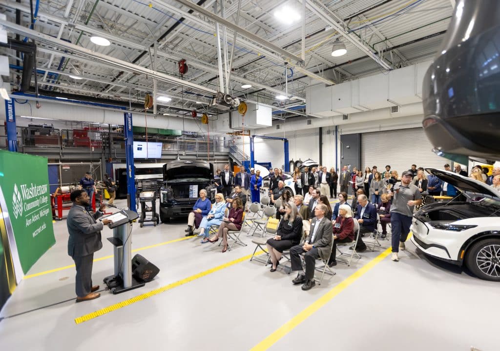 Building on its long-term commitment to mobility education, Washtenaw Community College (WCC) has unveiled a new electric vehicle (EV) and battery laboratory. Equipped with vehicle lifts, charging stations, and electric battery workbenches, the space prepares students to perform essential maintenance and repairs on hybrid and electric vehicles.
