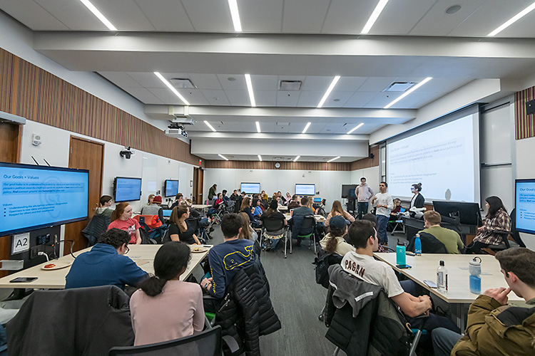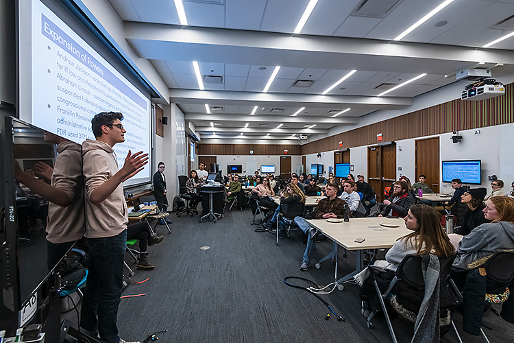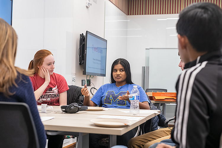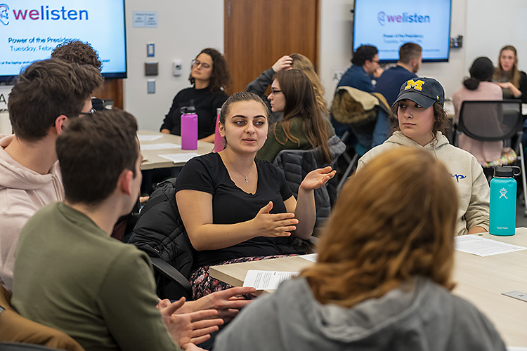 At first glance, one might assume that the 60 students divided into small groups at the University of Michigan’s (U-M) Weiser Hall are studying on this cold February weeknight. Instead, they’re politely discussing the history of the executive branch and how it relates to current events – specifically the recent government shutdown.