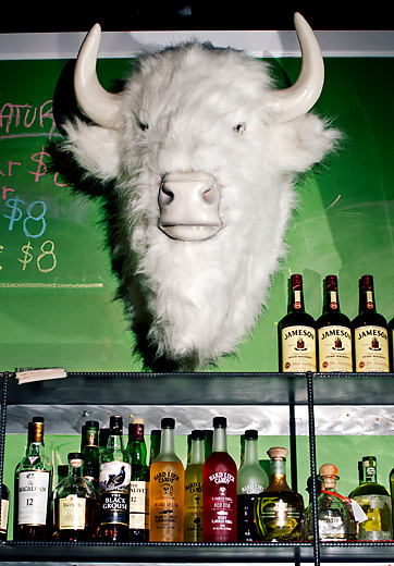(Laughs.) I can’t really tell any good karaoke stories without naming names. Our Bingo Night’s probably our most fun night. We get an emcee. We give him a couple shots of whiskey to do the emceeing. He gets a little lippy with the customers. And it’s free to play. Anytime you make a purchase you get more cards. And he calls off “Bingo!” in a surly tone and you win cash. We give out T-shirts and other prizes. On Wednesdays we do trivia. That’s pretty popular.