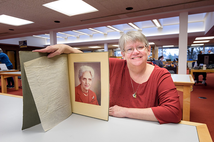 Doug Coombe – Deb Anderson with a photo of her grandmother and Youth For Understanding Founder Rachel Andresen