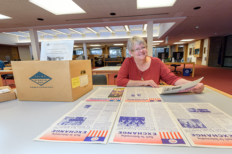 Doug Coombe – Deb Anderson looking through the Youth For Understanding archives at the Bentley Historical Library at U of M