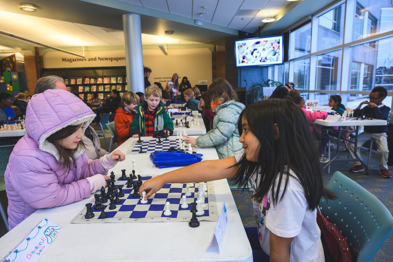 Club members are also invited to research top chess players and write about those who inspire them. Skidmore Smith says they’ll publish the results in a binder, which they’ll gift to the library. Olivia Lee, 7, says she picked International Master and Woman Grandmaster Alice Lee as the chess player she wanted to research and write about in part because they had the same last name.