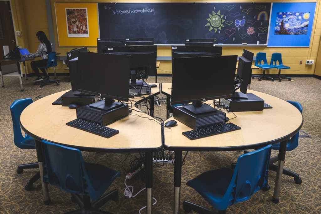 The center now occupies two other rooms: a small auditorium and a large room that contains a hygiene closet, a bank of eight computers with internet access for center clients to use, and a relaxation space with comfortable chairs and beanbags. YCS families using the Resiliency Center aren’t just getting their immediate needs met but are introduced to other community resources, Allen says.