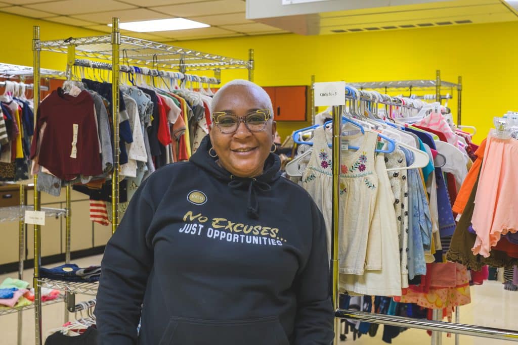 When Allen took over in 2021, she says she almost had “heart palpitations” walking into her office. She officially had only one room to work with, but donations to the center had outstripped demand and three additional rooms were piled with clothing and other donations.