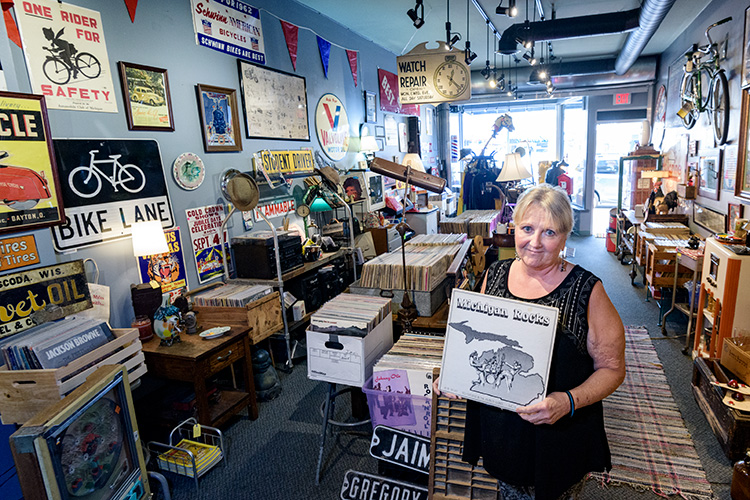 If a customer comes into a2vintage looking for an item that the shop doesn’t sell, Callison will tell the customer to see if it’s available at one of Ypsi’s other antique stores, like Salt City Antiques or Materials Unlimited. For instance, Callison will send someone who’s looking for vintage jewelry or antique mixing bowls to Salt City, and she’ll send someone who’s looking for a unique child’s gift to The Rocket.