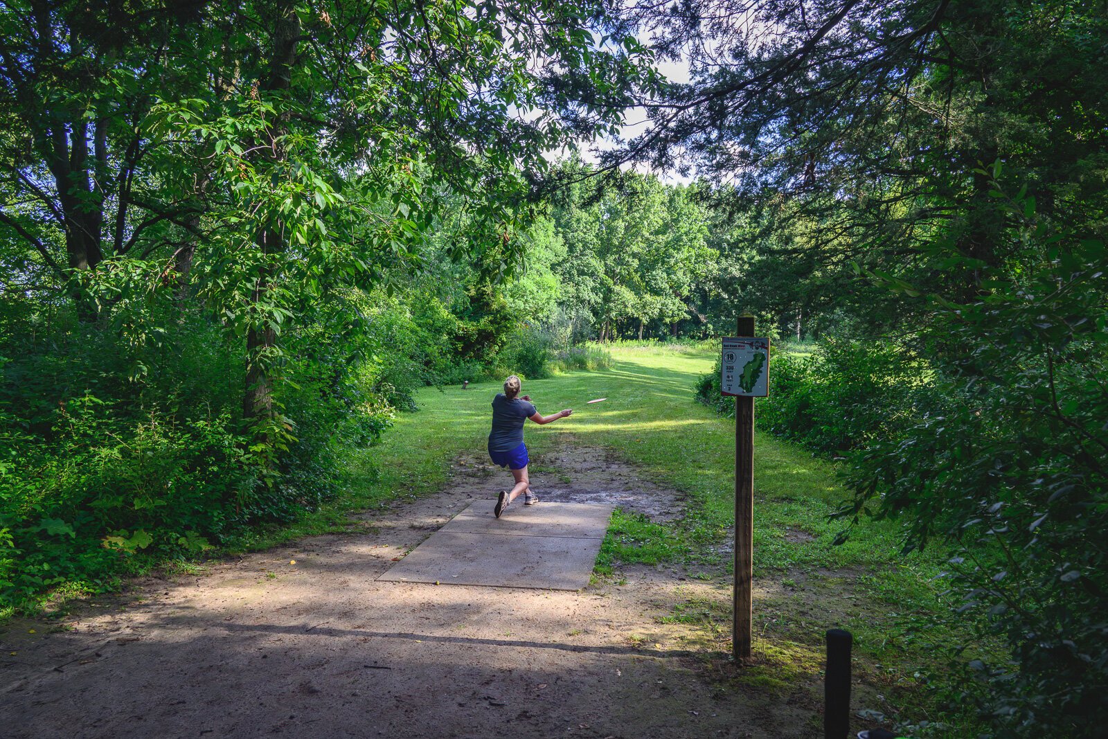 “I used to play the course at Mary Beth Doyle Park [in Ann Arbor], and the first few times I missed holes 13 through 15,” Feeney says. “Then I finally got the app and got good directions.”