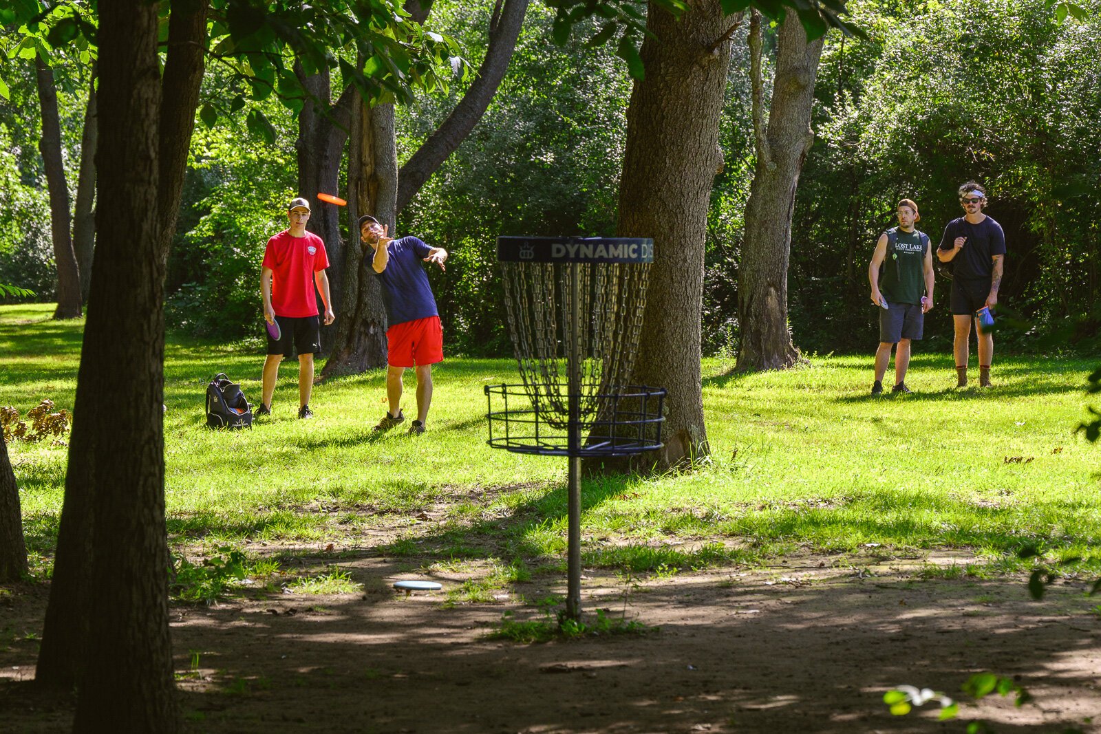 Ben Calhoun, owner of The Throw Shop at the entrance of the Lakeshore course, says both Lakeshore courses are friendly to beginners, but other local players recommend the Ponds course over The Woods since the first has longer but less technical shots.