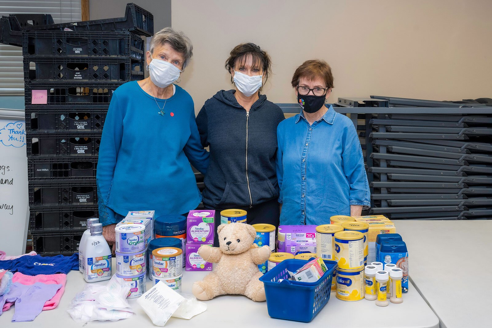 “Right now, more people are calling for food appointments, and we’re having to schedule people farther out because you’re shopping by appointment,” Weinert says. “So far, we can still send everyone home with six bags of groceries, but further out, I don’t know.”