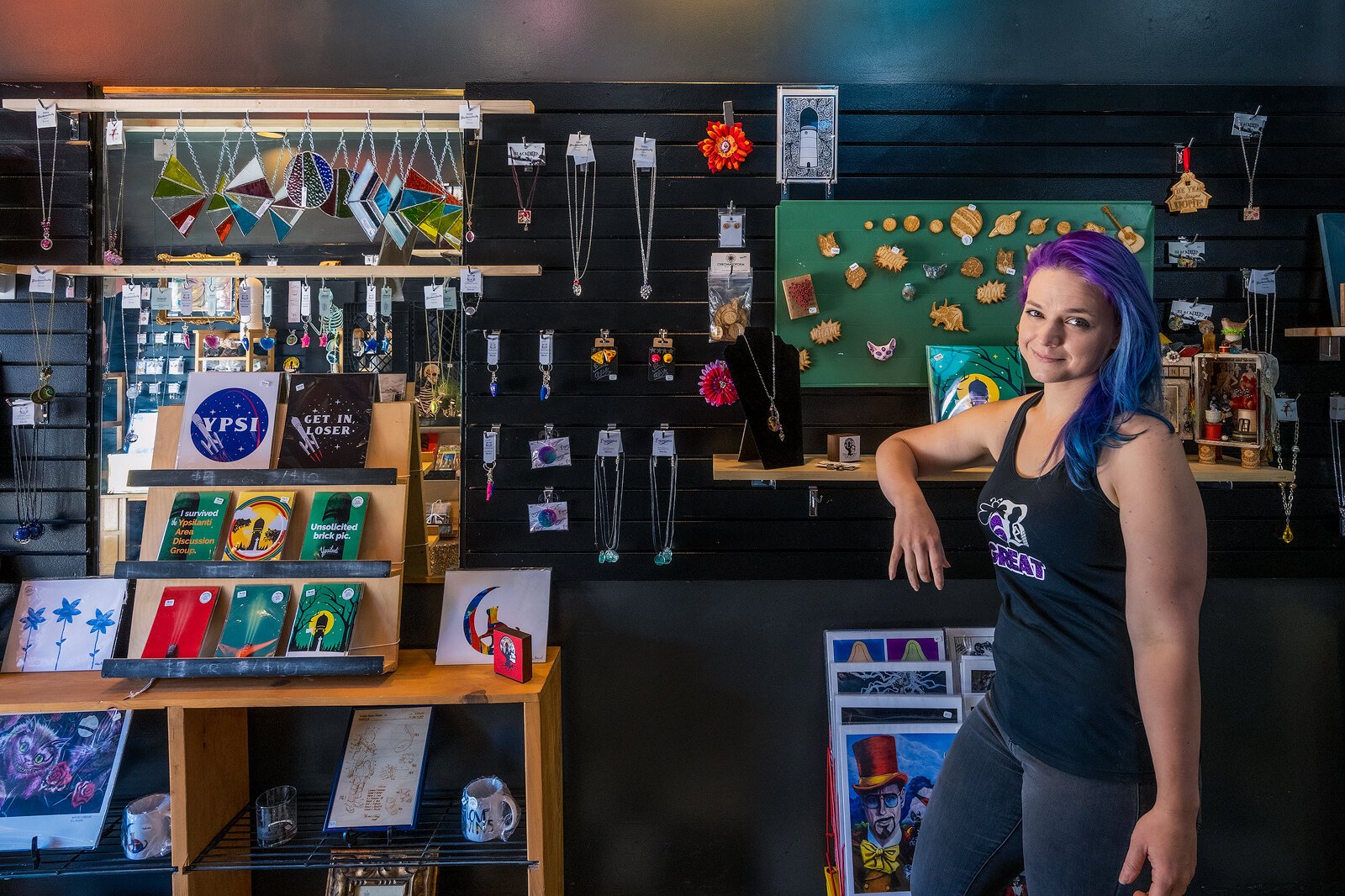 Holly Schoenfield says she started her “galactic gift shop” at 224 ½ W. Michigan Ave. in downtown Ypsilanti almost by accident.